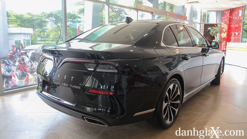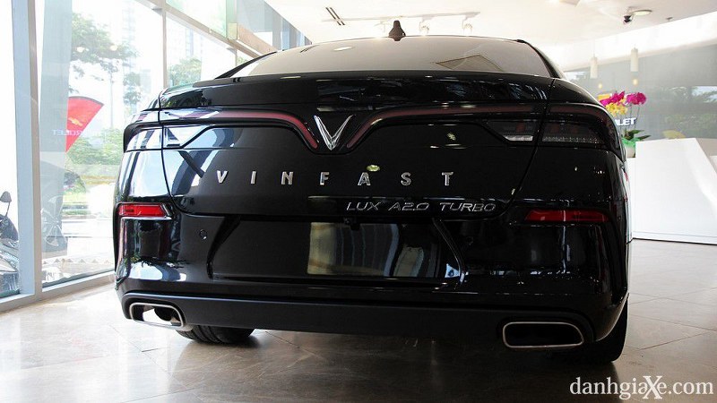 Phần đuôi xe cũng là điểm nhấn chính trong ngôn ngữ thiết kế của Lux A2.0. Khu vực này nổi bật với cụm đèn hậu LED với hai dải chiếu sáng mỏng được kéo dài đến khu vực trung tâm và vuốt xuống làm nổi bật logo chữ V. Chi tiết này tạo sự thống nhất trong tổng thể của xe, giúp Lux A trở nên hài hòa, liền lạc và tạo được nét đặc trưng riêng so với những mẫu sedan khác trên thị trường.