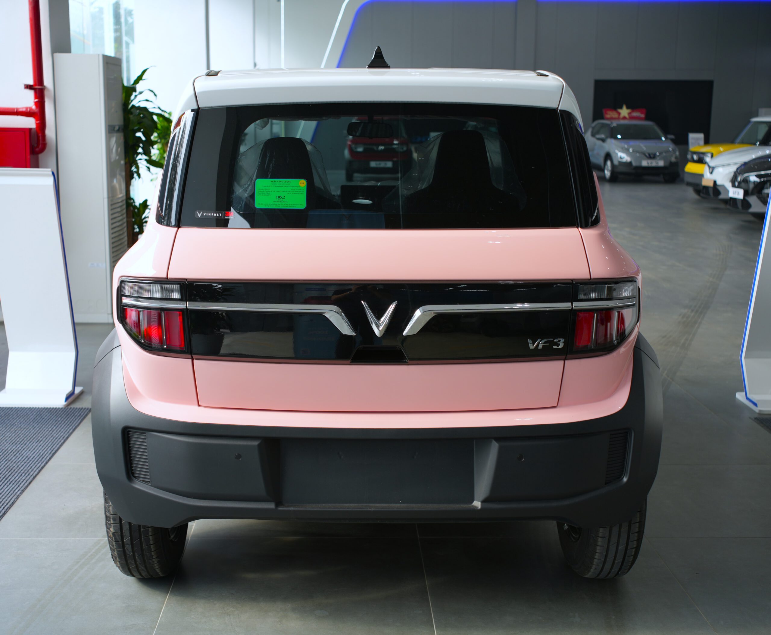 Quay trở lại một chút về thiết kế ngoại thất, chúng ta thấy phần đuôi xe có thiết kế vuông vức làm gia tăng không gian nội thất ở phần đuôi xe. Và là dòng xe ô tô điện nên động cơ nhỏ gọn hơn xe xăng rất nhiều do đó phần đầu xe của VF 3 có thể thiết kế ngắn hơn để tối ưu hơn cho không gian nội thất cho 5 chỗ ngồi bên trong.