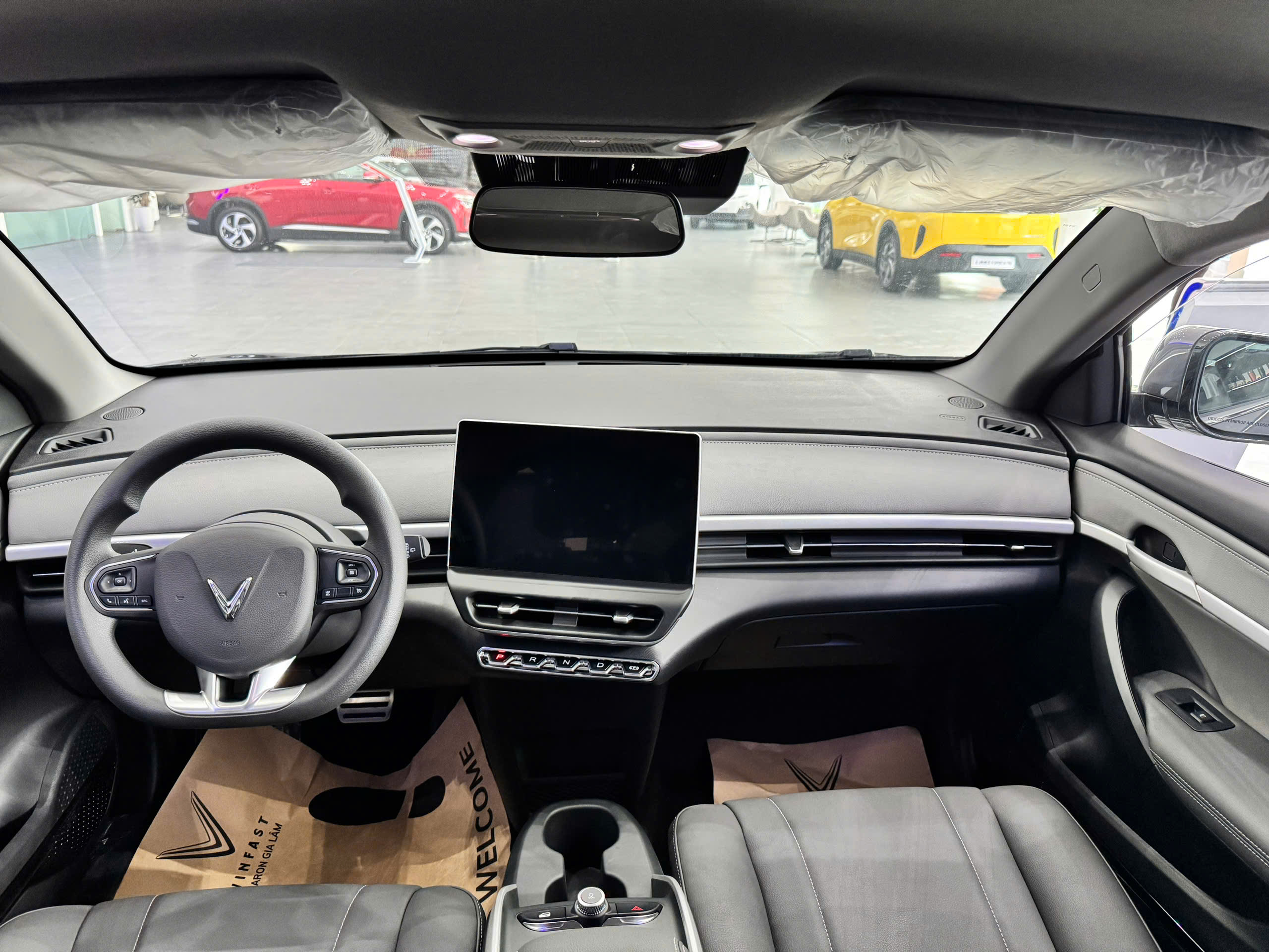 VinFast thực hiện chuyển cần số và phanh tay điện tử thành dạng lẫy gạt ngay dưới màn hình giải trí, đồng thời loại bỏ bảng điều khiển bên dưới màn hình trung tâm. Phong cách thiết kế tối giản này giúp cho không gian di chuyển giữa ghế lái và ghế phụ trở nên rộng, thoáng hơn.